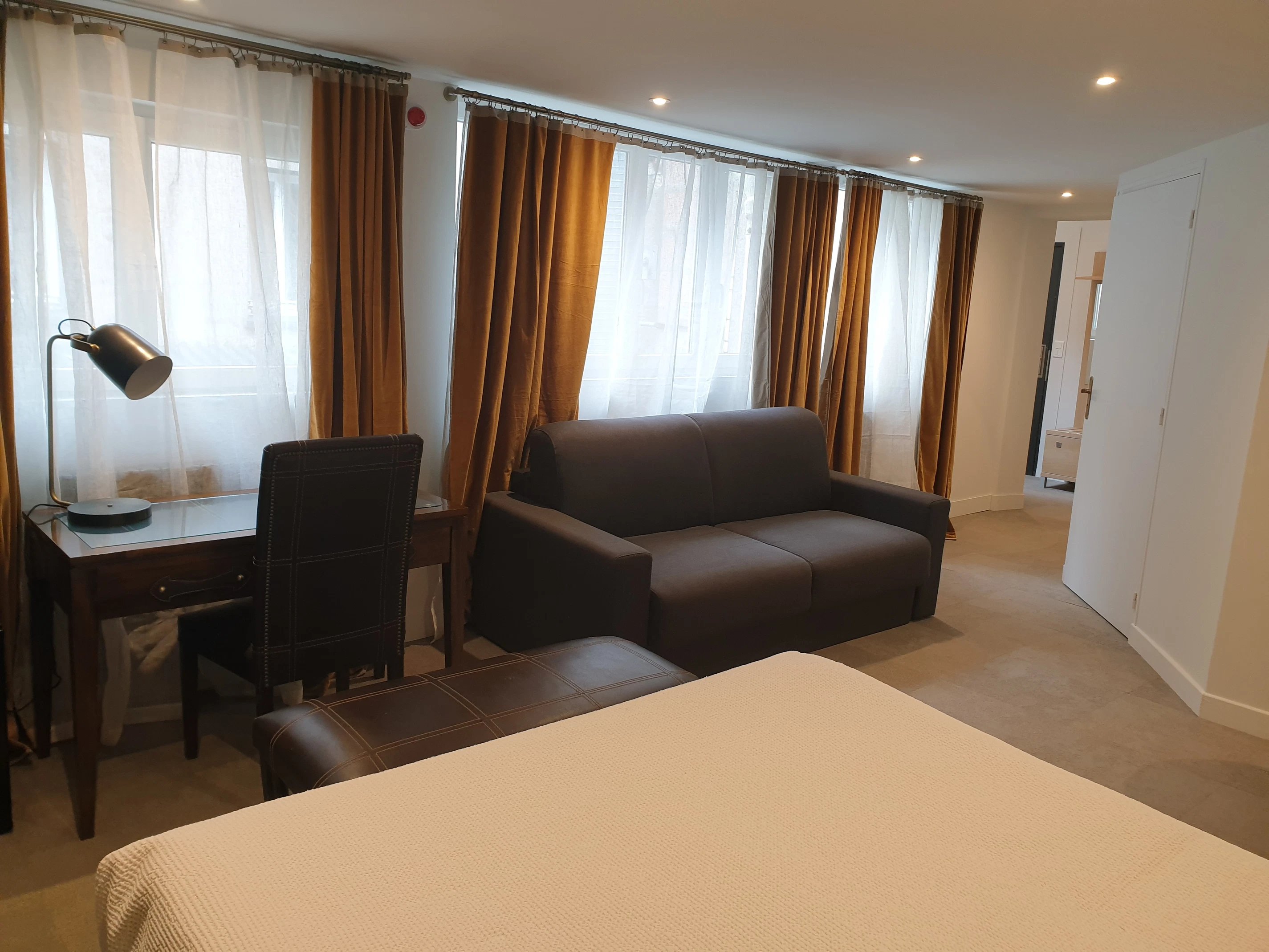 The family rooms face the courtyard. They are equipped with shower, hairdryer, toilet, TV and telephone. Internet access by ADSL WIFI, canal+ and Canalsat. They can accommodate up to 4 people. Surface of 30m2 with 1 double bed of 140 and 1 single bed of 90. Possibility to add an extra bed (on request with an extra charge of 15 € per day).