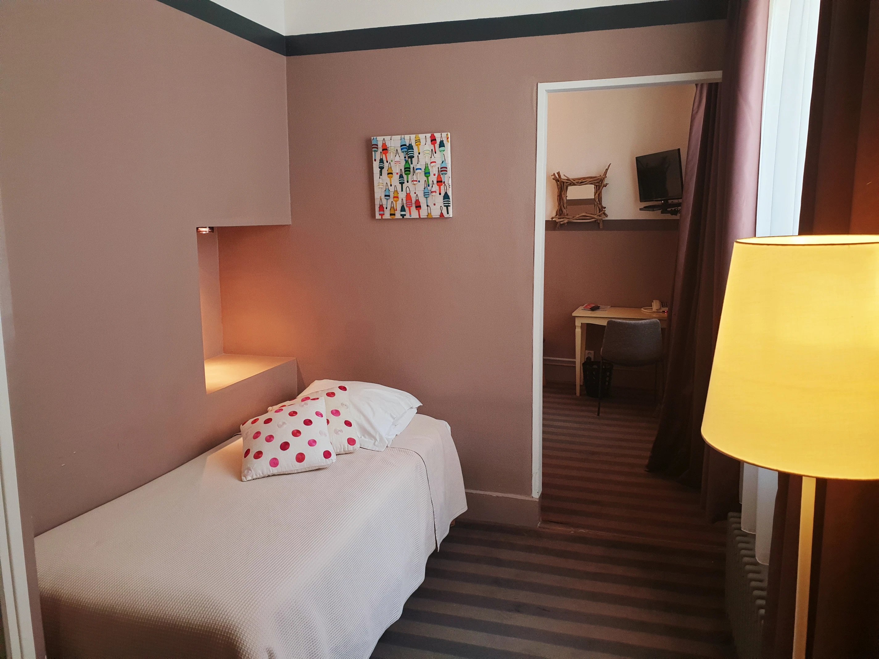 Les chambres familiales donnent sur une petite arrière-cour & les toits. Elles sont équipées de douche, sèche-cheveux, toilettes, TV et téléphone. Accès internet par ADSL WIFI, canal+ et Canalsat. Elles peuvent accueillir jusqu’à 3 personnes. Superficie de 30m2 avec 1 lit double de 140 et 1 lit simple de 90 pour la chambre "Récif" et avec 1 lit double de 140 et un canapé lit pour la chambre "Les Voiliers".
